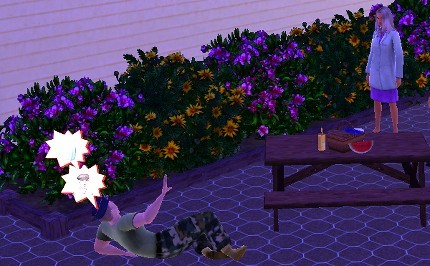 臆病なシム達はこの場面に出くわすと怖くて失神します。