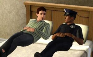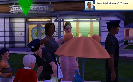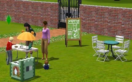 ボディガード(?) の二人、ここでもコンビで買いにきてます。これ、コントロールしていないシムの自由行動なのに、彼らはいつもべったりでヤバいかも。ホントに仲を疑いそうです。