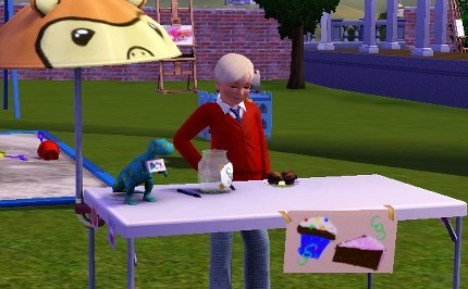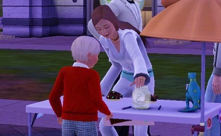 今日はメインストリートでマフィンを販売です。お客がどんどん買ってくれるので坊ちゃんは大忙し。お金の流れもしっかり理解しています。