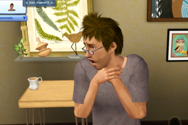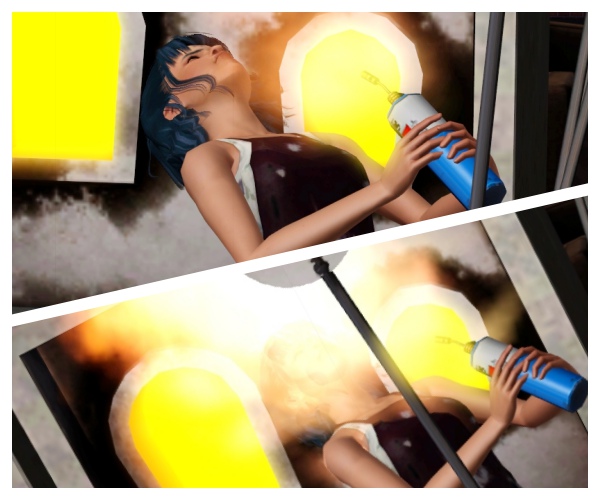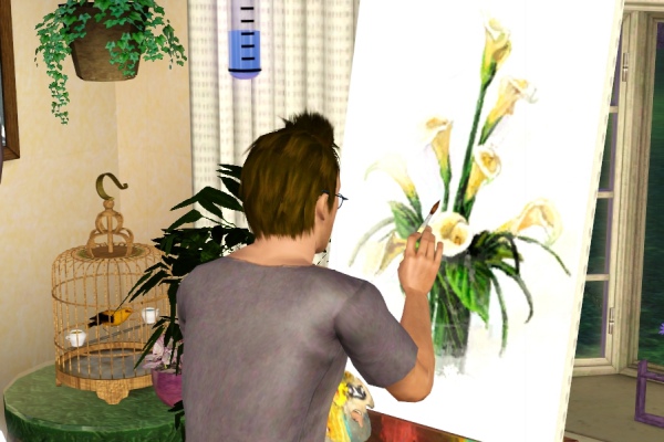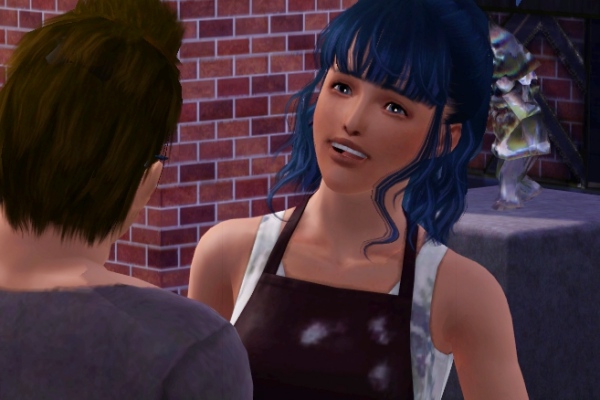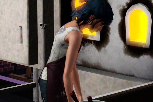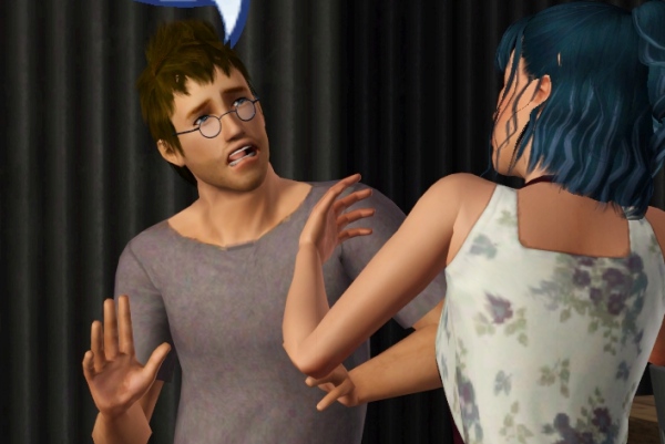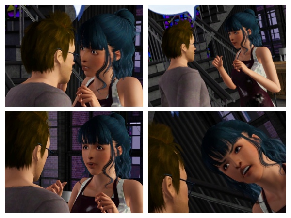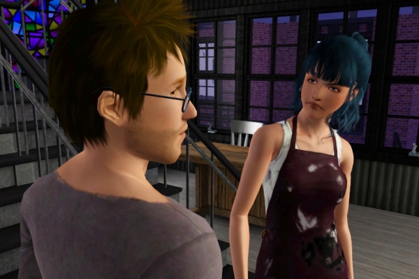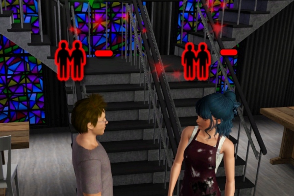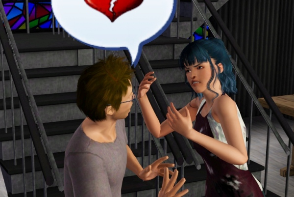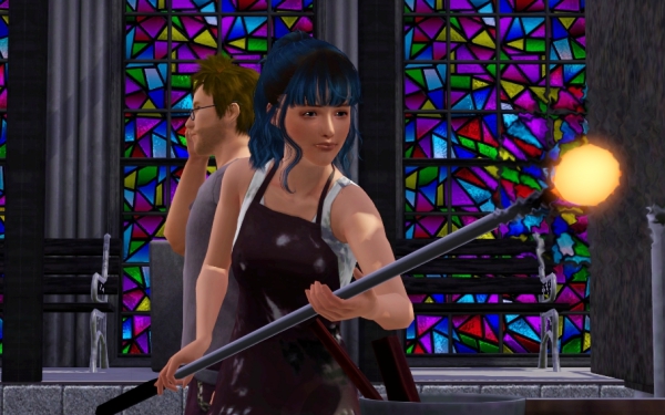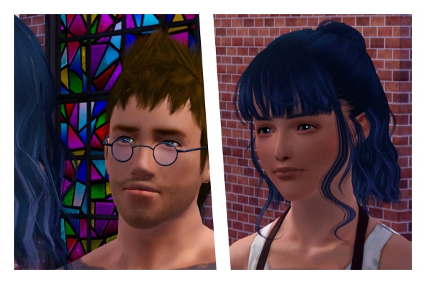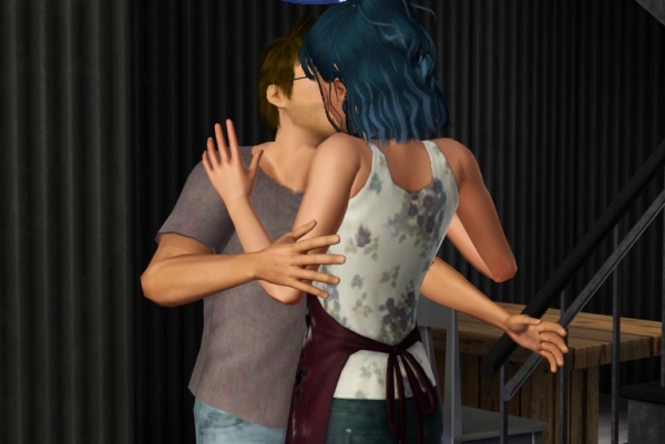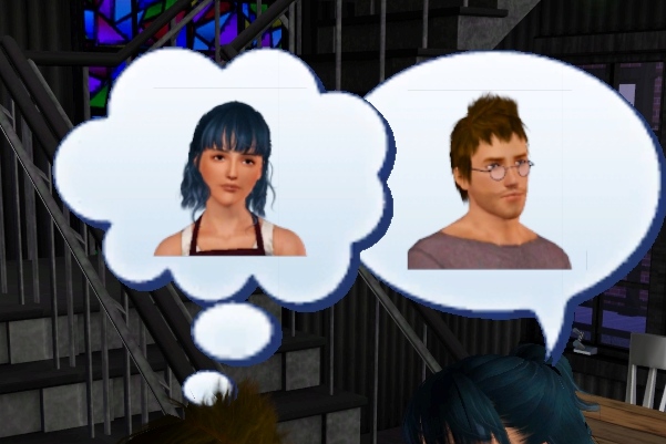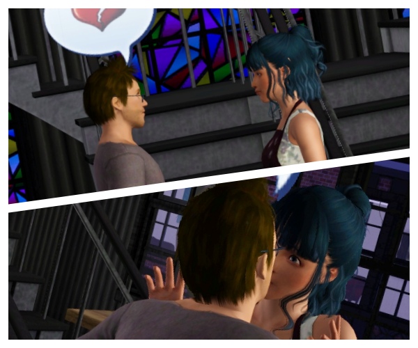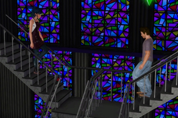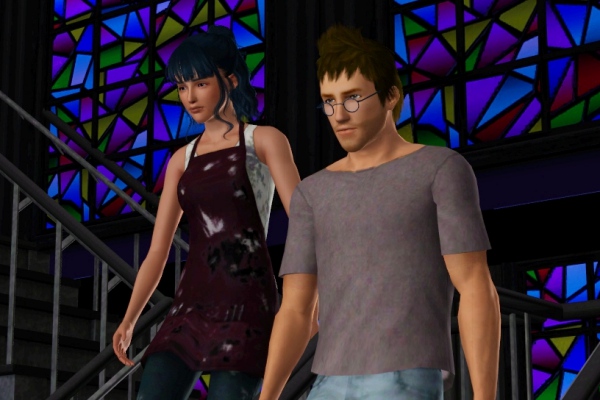 なんででしょうね、二人のキャラが自然に作れます。普段は自分のシムにいきなりチューとかさせないのに、ステンドグラスがきれいだったせいか、突然こんな気分になりました。