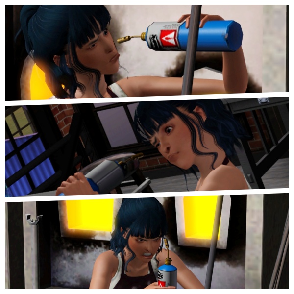 ん ? なにか様子がおかしい ? ガスボンベをながめたりカシャカシャとふって、危険な動きをしております。