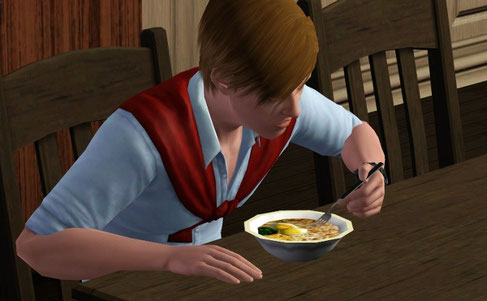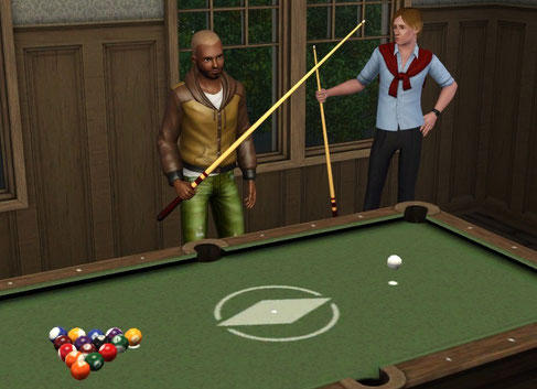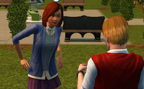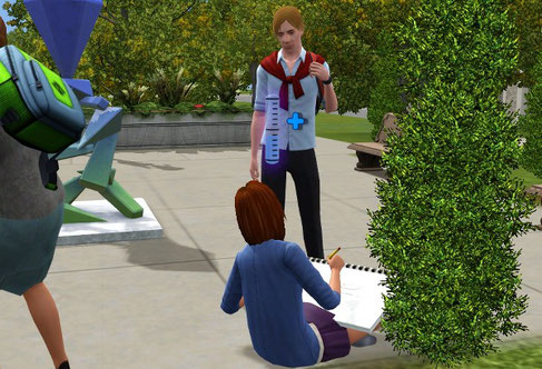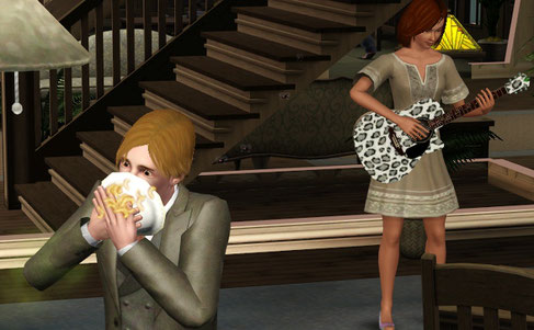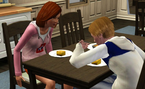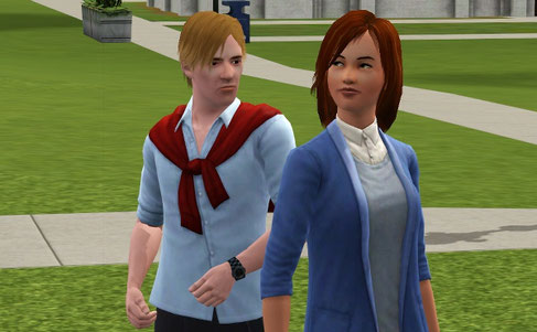 そういうイメージにしておきます。本当は Sims2 では夫婦の関係らしいけど、Sims3 のリバービューでの二人を見てると、いつもあっさりしているので、大学生生活もこのまま友達と恋人の中間くらいの関係にしておきたい。