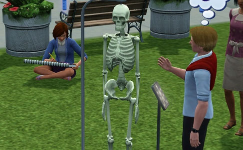 ボブの授業に必要なガイコツの模型。いろいろ出来ます。横でベティが座り込んでデッサンをしています。