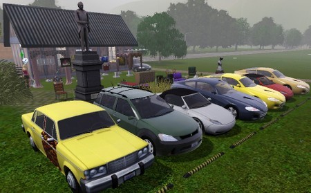 盗んだ車の数々。役所の銅像まで動かしてます。