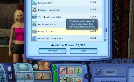 夢達成で 30,000 のシムポイントと引き換えに、 “Dusty Old Lamp”  ( “ほこりまみれの古いランプ” )を手に入れました。