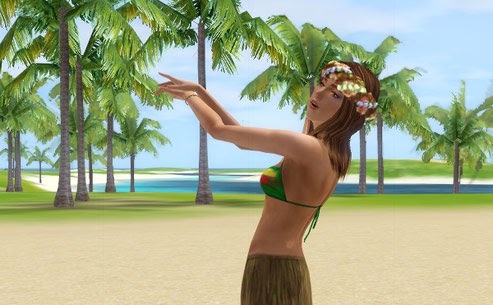 サンリッド・タイズのきれいな海と景色を楽しむストーリー。'ロミロミ' はハワイの伝統マッサージです。フラやウクレレ演奏のポーズで、ハワイのイメージを演出しました。