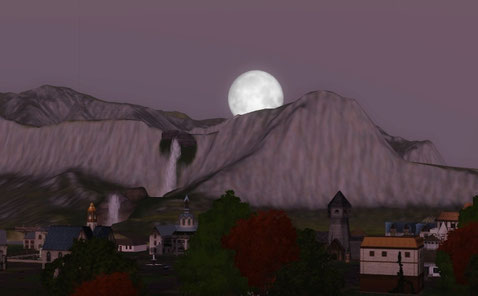 この一枚だけ見ているとゾンビがでそうな満月の夜の気分でゾクッとします。ドラゴンバレーなら、魔法使いも狼シムも、全然 OK な雰囲気です。