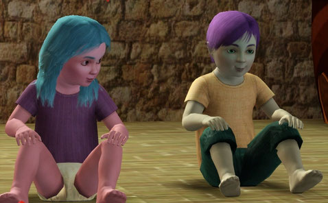 全身が青い子は、違う家の子供かな。あっ、Mithrilen という名字はひょっとして。