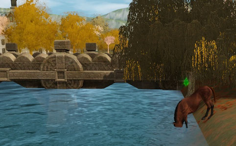 馬と川と橋の風景が絵になります。観光案内のパンフレットに出てくる写真みたい。