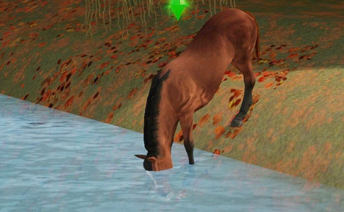 あっ、顔が (笑)・・・ ズボッと水に突っ込みすぎのお馬さん