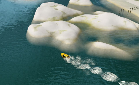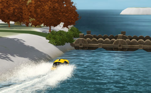 こっちの場面も少し笑えるかも。水上タクシーであちこち回ってみました。