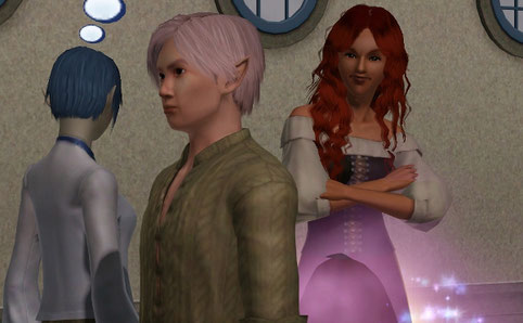 また街の様子を見渡してみます。このシム、見た目がいいかんじ。髪の色が違うと雰囲気もかわります。同じ種族でもタイプが違うのかな。