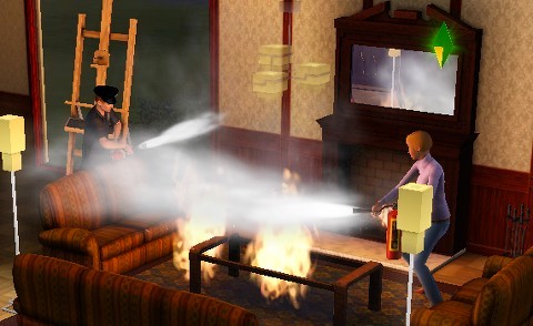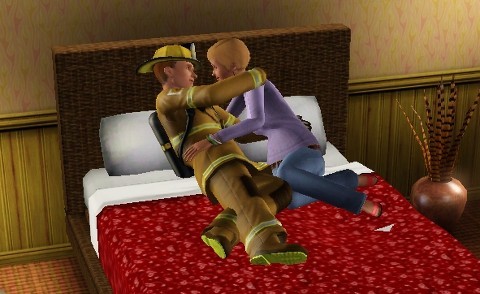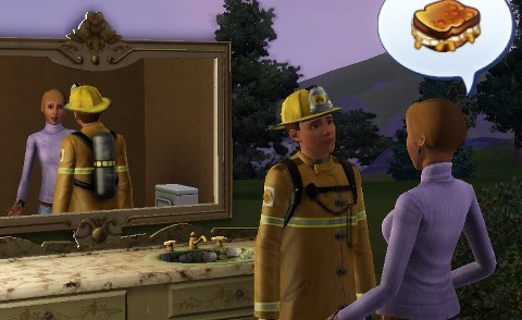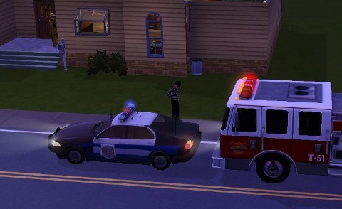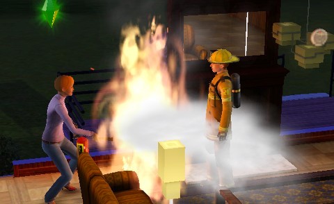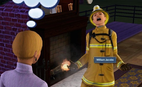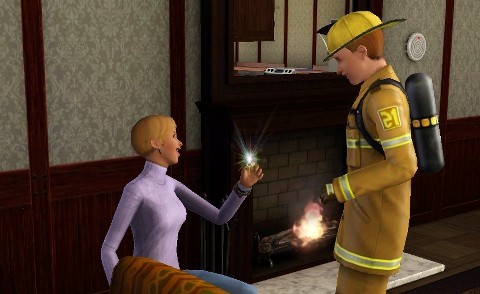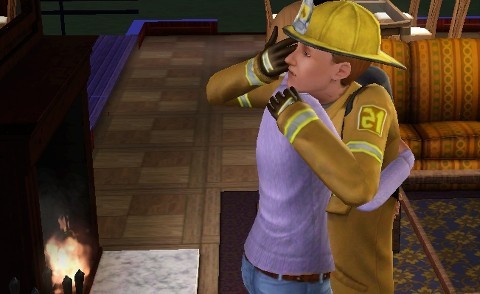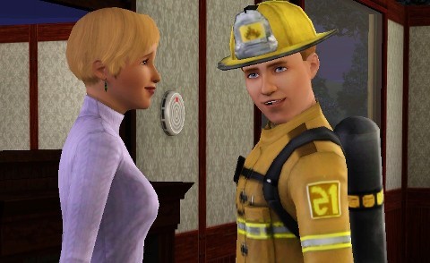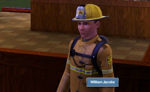 あれ、消防士がいつものシムと違う。きれいなデフォルト顔の NPC が登場しました。