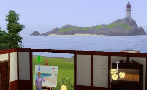 彼女の趣味は絵画です。今日は家でのんびり風景画を。この立ち位置と絵がよく見たらサンセットバレーの灯台を描いてるみたい。