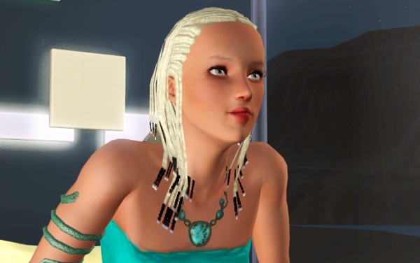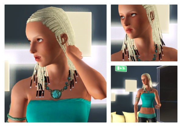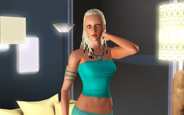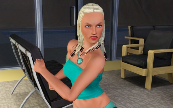 こんな雰囲気のシムが好き。何度もスキンを差し替えて、自分好みに仕上げてます。また変えるかもしれないけど、このイメージで決定かな、ミス・ターコイズ。