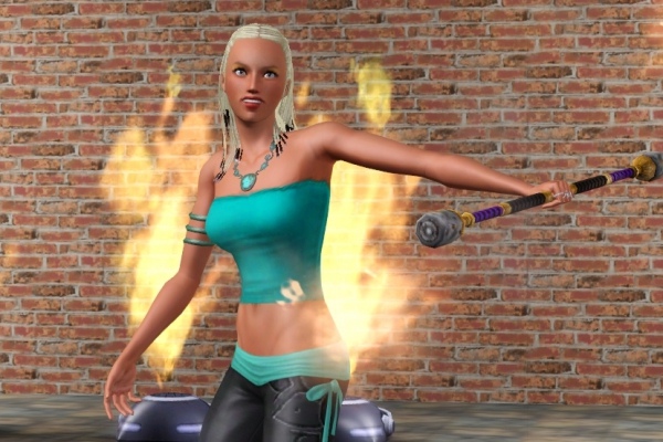 このシムにはアクションポーズばかりさせていたので、彼女の職業は正式にアクロバットのパフォーマーにしました。