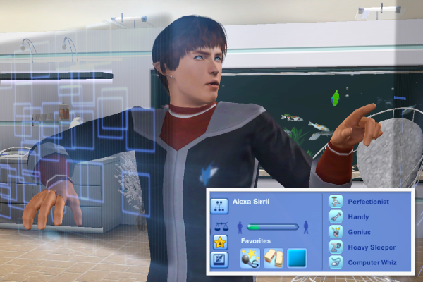 彼の職業はバイオ科学の研究者。彼自身も、未来都市のオアシスランドと他の異星のシムたちの選りすぐったDNAを持つハイブリットシムです。