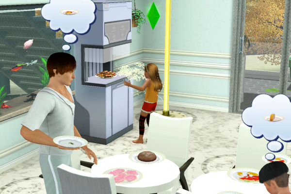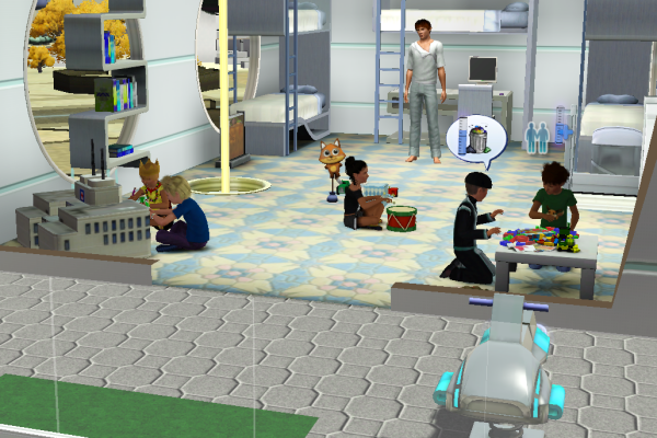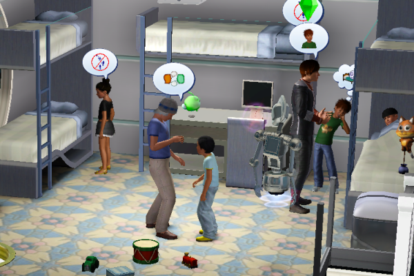 アレクサもはじめての研究なので、子供シムが何を要求しているのかわかりません。いっぺんに寄ってくると、困ってしまいます。