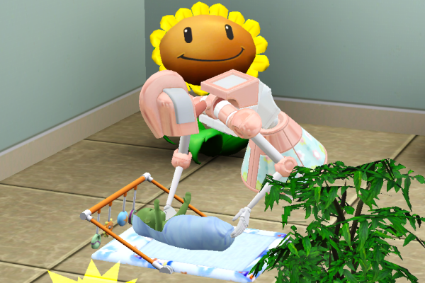植物シムのミノルくんを、養子に欲しいと依頼が殺到している中、希望者の中に、家でガーデニングを成功させているシムがいると聞いて、見に行きました。