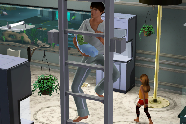 悪い特質のシムは、「赤ちゃんからキャンディを奪う」という、どうでもいいコマンドがあります。