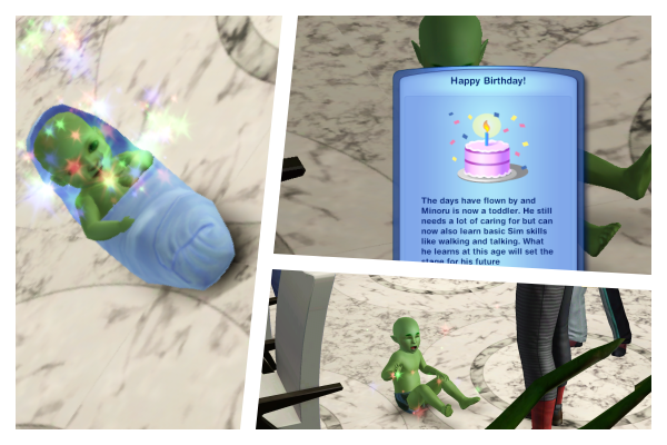 はい、さっそく泣かされていました。他の子供シムが悪さをして、ぎゃあーんと泣いてます。