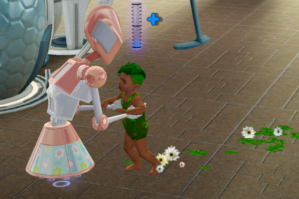 そして、アレクサが改良に成功しました。すっきりした愛らしい植物シムの姿になりました。