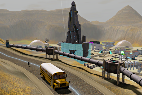スクールバスが走っています。どこのワールドも送迎は同じです。