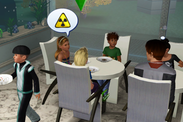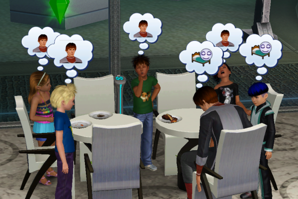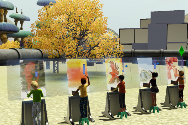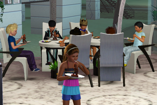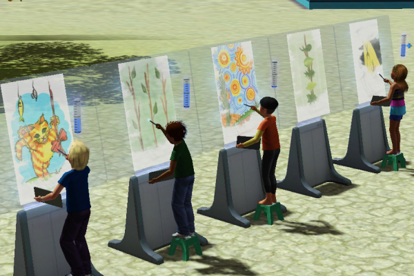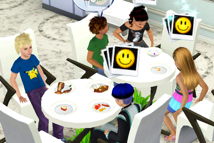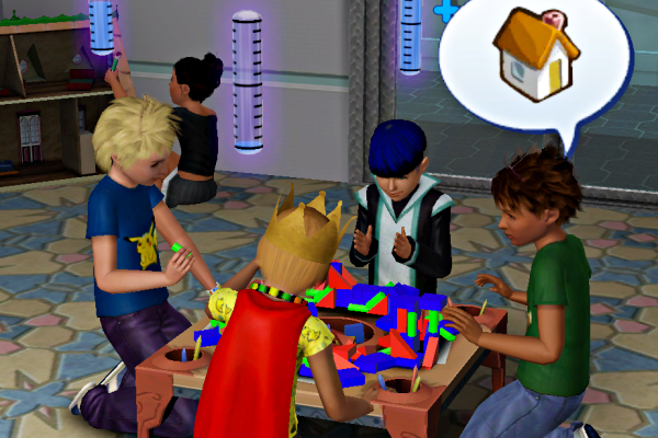 子供達の情緒は完成されて、学習は終了し、どこに行っても安心できる良い子のシムになりました。