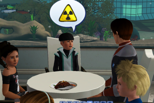 この吹き出し (放射性物質の危険なマークですよね? ) がよく出てきたので、こんな話を想像して。