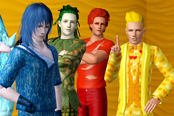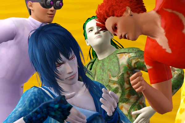 おもいつきで作ったキャラクターたちですが、色の組み合わせを調べながら、いろんな感情をシムたちに表現させてみようと思います。