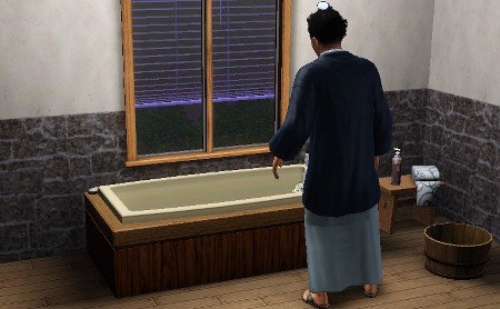 お風呂もいいかんじ。バスタブの色を変えて、昔風に。小物はストアコンテンツから購入したもので。