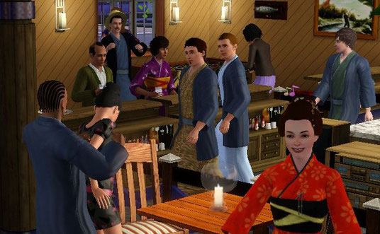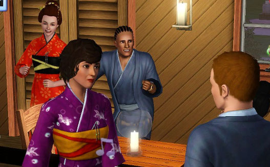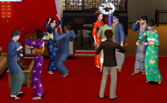 この頃のプレイはMOD はまだ未使用で、チートで CAS から変身させるため、毎日のようにパーティを開いてみんなを集めて楽しんでいました。