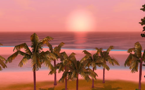 夕日もきれいです。画像加工なしでそのままのスクリーンショットですが、ほんとにこんな色で、海のブルーと赤が混ざってきれいな景色です。