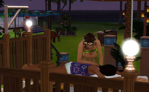 ええっ、その歩き方はひょっとして。ごめんなさい、マタニティだったんですね。だから服装が変だったのか。全然気がつかず、思い切り余計なお世話してしまいました。マッサージもやばいじゃん (ゲームだからシムは大丈夫だけど)