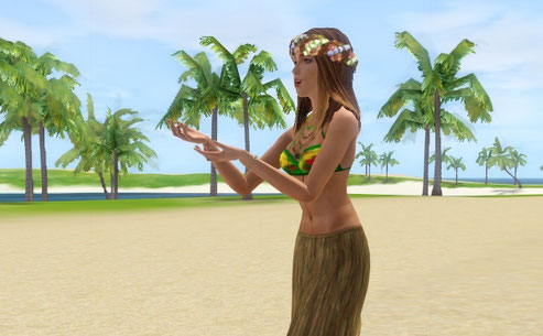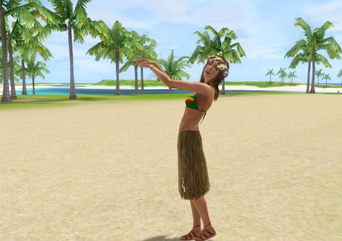 本当はフラのポーズではないけど、それに近いものを探しました。フラダンスのカスタムポーズは探し中。なかなか見つからない。