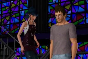 彼女のうしろで Yuri Ivanov (ユーリー・イワノフ) が出番を待ってるかのようにピッタリくっついてます。 Yuri は誘惑的なシムだから、こんなストーリーなら出たがるだろうな。