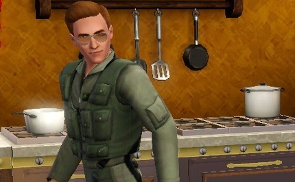 自分のビデオ見て笑ってます。よく撮れてますよ。ゲームの中でシムホームビデオを撮影・再生できるって、シムズのメニューもすごいけど、こんな細かいプレイはマニアすぎ。