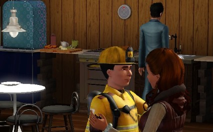 他のシムと違って Lee の見た目の雰囲気がひたむきというか、いじらしいしぐさを見せるんです。よく電話がかかってきて、この日も夜遅くにデートのお誘い。雪で寒いのに手袋なしで震えながら待ってたんです。だから家に連れてきました。
