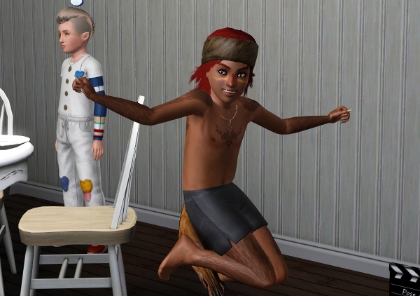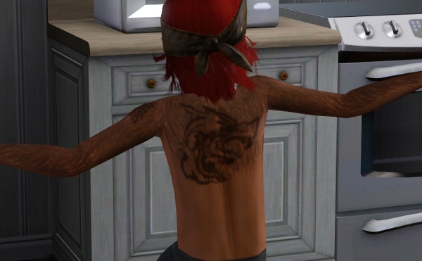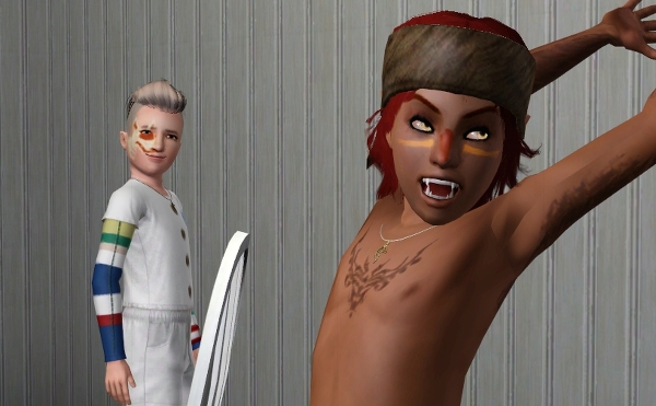 腕にもタトゥーを入れてみよう。オオカミというよりインディアンの子供みたい。
