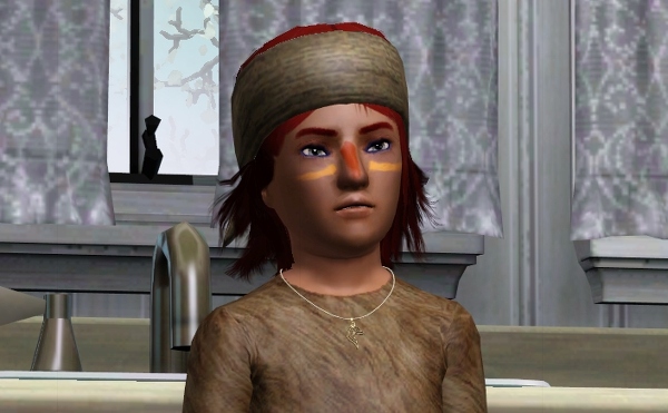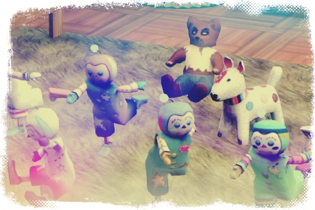 しかしこの子のメイキングには自分でも笑いました。ワンコ模様のフェイスペインティングが、ちょうどぬいぐるみと同じ右目だし。イマジナリーフレンド用の子供服は、チートでアンロックして強引に着用しています。