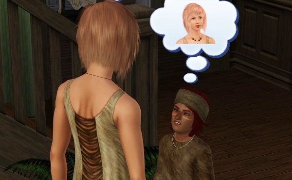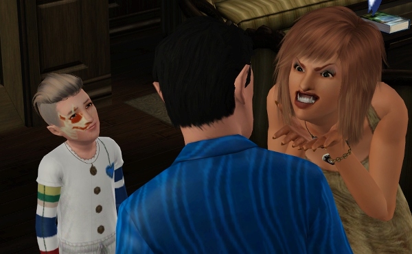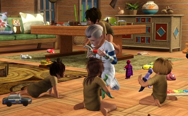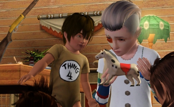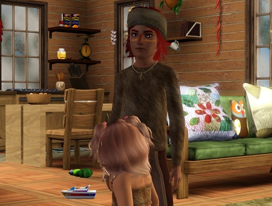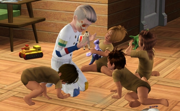 4番で末っ子のアリア・ケイが、好奇心旺盛な顔でのぞいてます。この子は甘えん坊キャラにしよう。この間もダディの首にぶら下がって、ずっとくっついていたので、