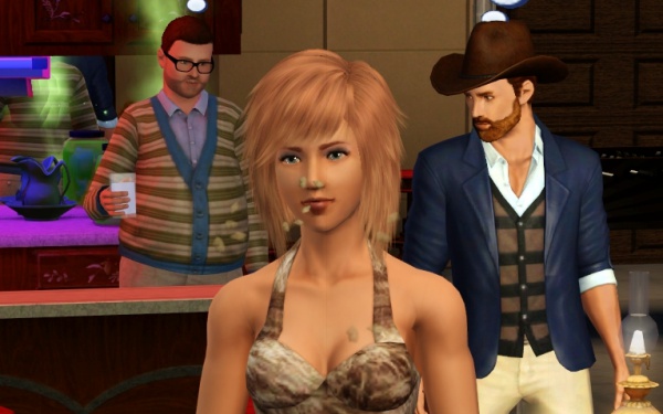 いちおう食事シーンなので、雰囲気をだすためテーブルがある町のバーにきてますが、