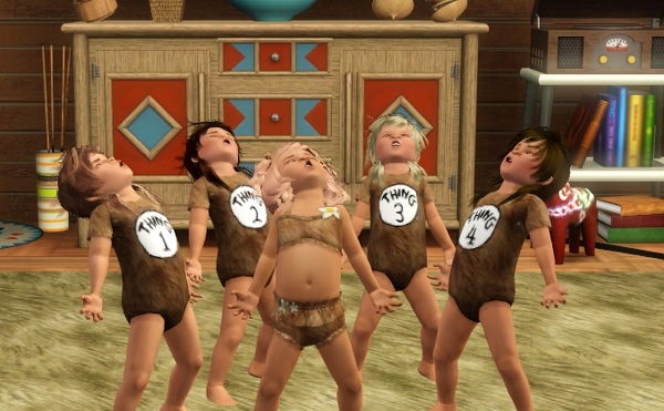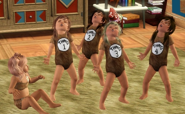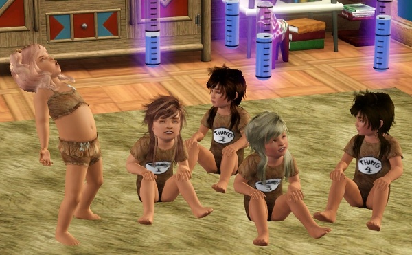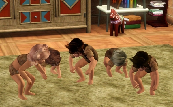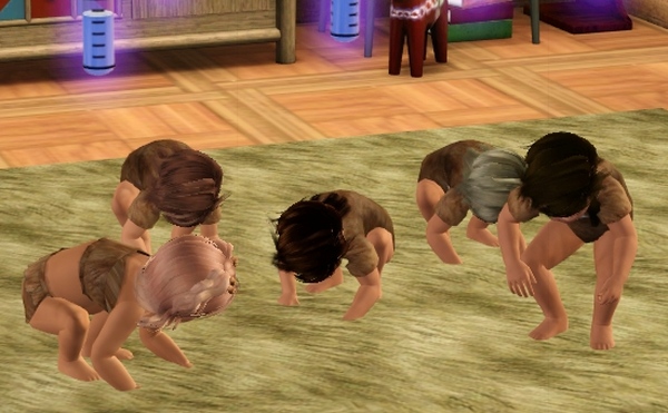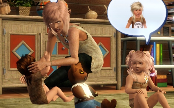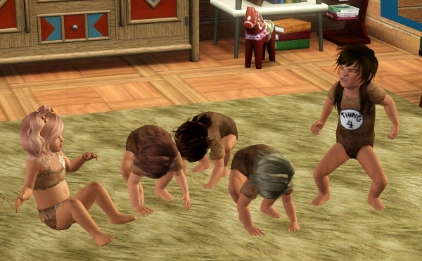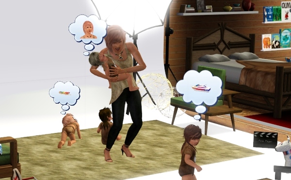 そしたら親シムがちゃんと抱きかかえてあやしたりベッドに連れて行ったり、放っておいてもフリーウィルの行動でしっかり世話をするので、ゲームに感心しました。