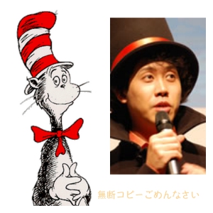 このドクタースースの絵本で 「THE CAT IN THE HAT」 に登場するキャラクターが、子供達に関係してるんです。こっちの話題が本題です。