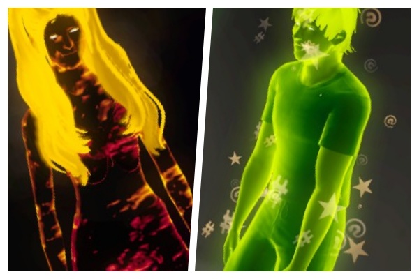シムが命を落とす原因によって、ゴーストのカラーが違うんです。