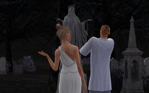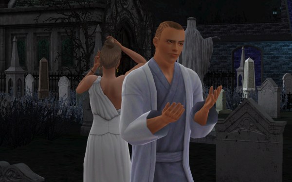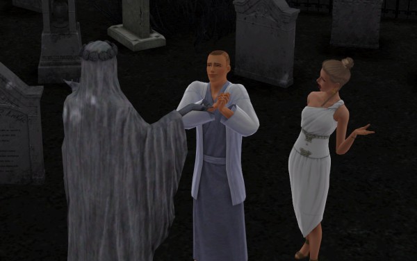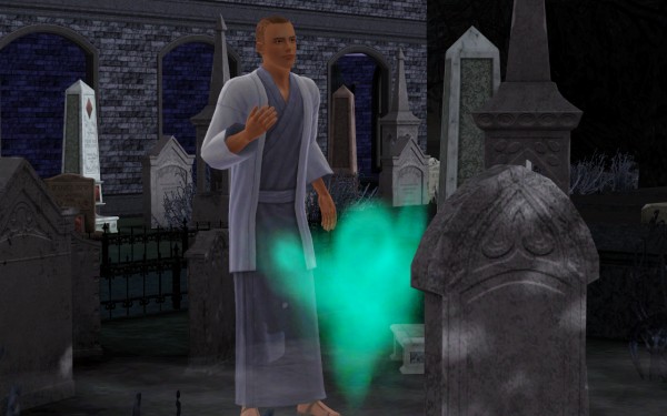 シムの世界では、墓石か骨壷があれば、よみがえらせることができますが、ずっと待っているゴーストたちの方が多いのでしょう。