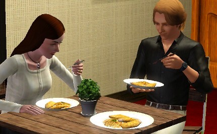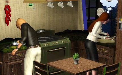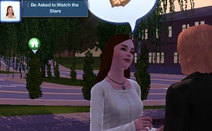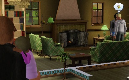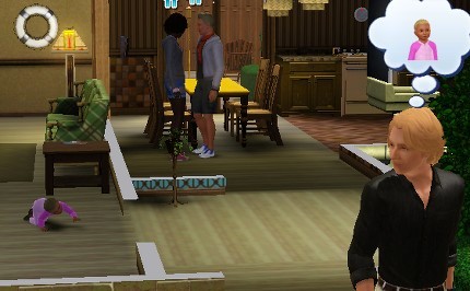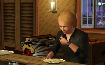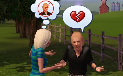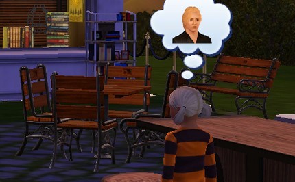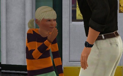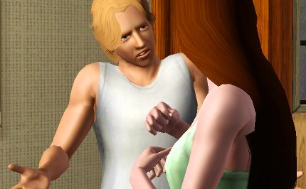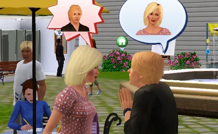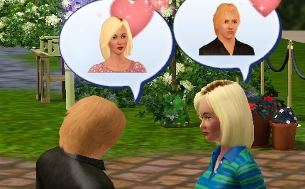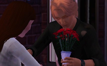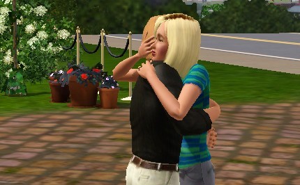 彼女は家族志向のシムなので、その積極的な態度がなぜかやさしく癒されるような気分になって勘違いするのです。(同じ動きなのに、錯覚してしまう。これもシムズのワナか? )