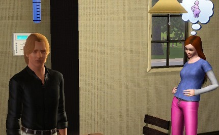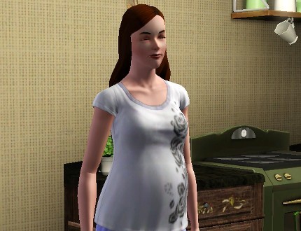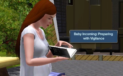 長い時間苦しんでます。ゲームとはいえ、マタニティシムがうなっている姿は何度見てもとまどいます。