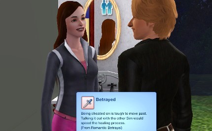 この時のプレイはまだマスコンなどの MOD は未使用で、チートは使わずシム達の自由行動で自然な流れにまかせていたので、ちゃんと復縁できてヨカッタヨカッタ。