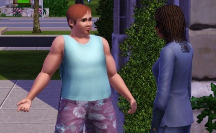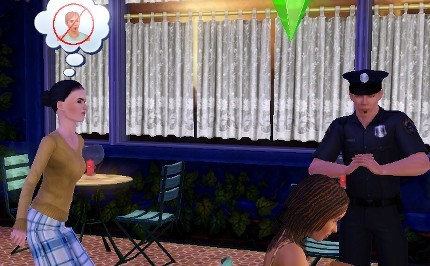 恐がりのシムは、彼女を見ると悲鳴をあげて逃げ出します。